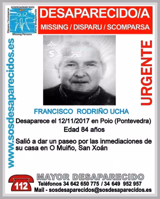 Según informa 'SOS Desaparecidos', el anciado salió a dar un paseo por las inmediaciones de su casa en O Muiño, San Xoan.