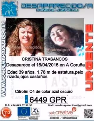 La familia de Cristina Trasancos, una mujer de 45 años vecina de A Coruña y de la que no se tienen noticias desde el sábado, ha denunciado su desaparición y ha pedido la colaboración ciudadana para su localización.