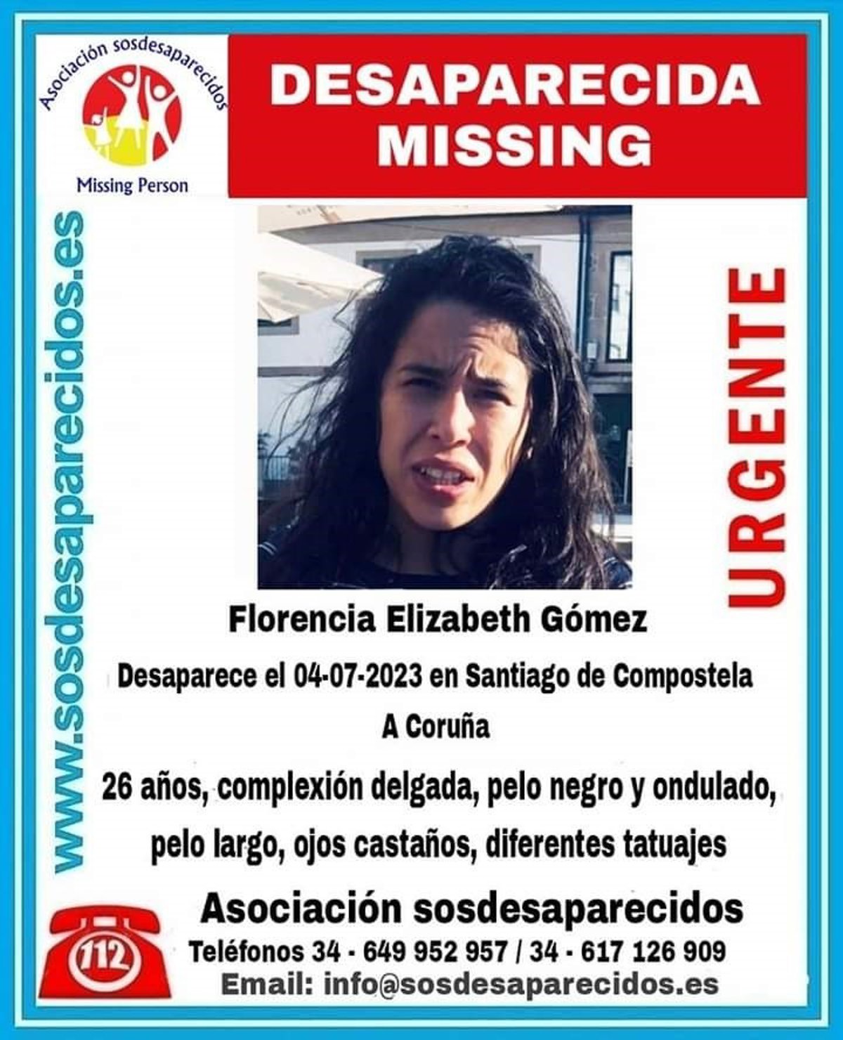 Una joven de 26 años, Florencia Elizabeth Gómez, se encuentra desaparecida en Santiago de Compostela desde el pasado 4 de julio.