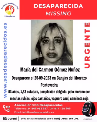La Asociación SOS Desaparecidos ha emitido este viernes una alerta para solicitar la colaboración ciudadana en la localización de una mujer de 54 años, desaparecida en la localidad pontevedresa de Cangas desde el pasado lunes.
