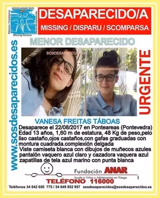 Una menor ha desaparecido en el municipio pontevedrés de Ponteareas en las últimas horas. Se trata de Vanesa Freitas Táboas, de 13 años de edad, alrededor de 1,60 metros de altura y unos 48 kilos.