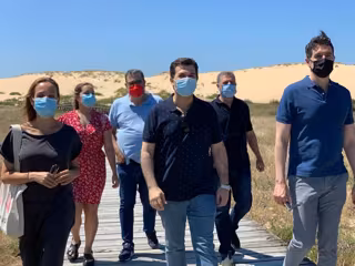 El secratario xeral del PSdeG, Gonzalo Caballero, junto a cargos del partido, vista las dunas de Currubedo, en Ribeira (A Coruña) - PSDEG