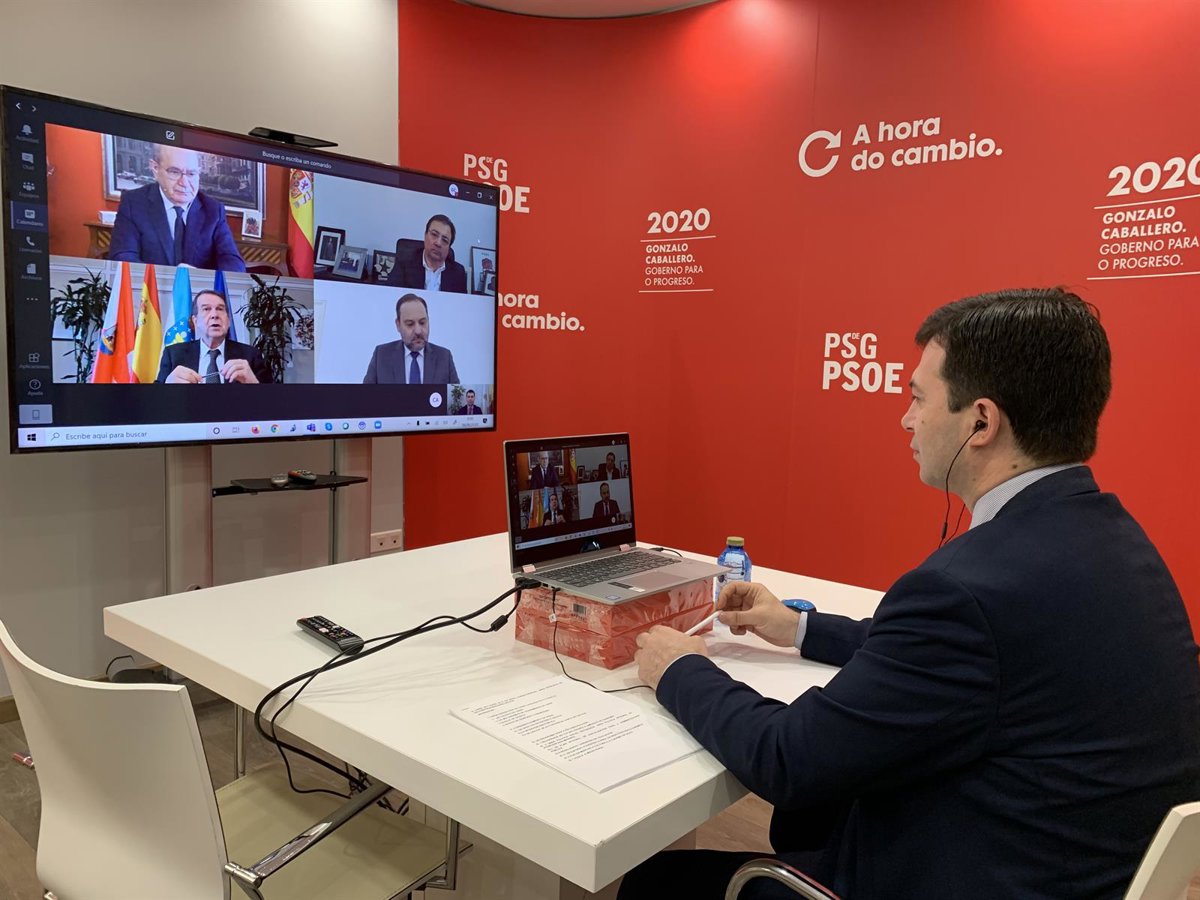 El secretario xeral del PSdeG y candidato a la Presidencia de la Xunta, Gonzalo Caballlero, partiicpa en el encuentro telemático de Nueva Economía Fórum - PSDEG
