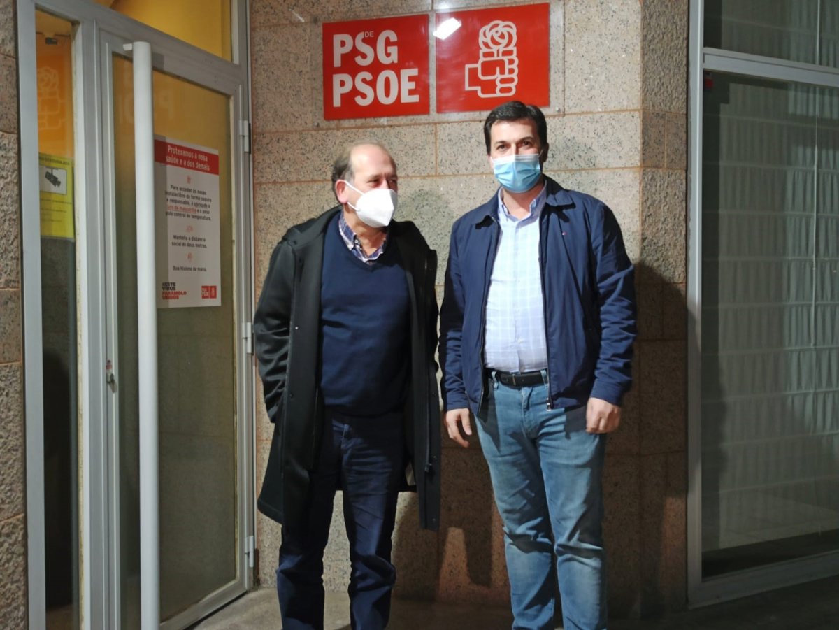 El presidente del PSdeG, Xoaquín Fernández Leiceaga, junto al secretario xeral del partido, Gonzalo Caballero, en la sede en Santiago de Compostela - EUROPA PRESS