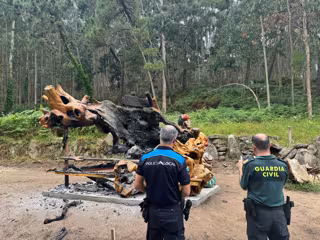 La obra escultórica con forma de banco tallada en la madera de un castaño centenario dañado por el temporal 'Karlotta' e instalada hace poco más de dos semanas en el Camiño de Cinoche de la localidad de Burela (Lugo) ha amanecido este miércoles completamente calcinada como resultado de un acto vandálico que la alcaldesa del municipio no ha dudado en calificar como un "delito de odio".