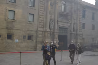 Varias personas con mascarillas en las inmediaciones del Monasterio de Santo Estevo, a 19 de septiembre de 2025, en Ribas de Sil, Ourense, Galicia (España). - Rosa Veiga - Europa Press