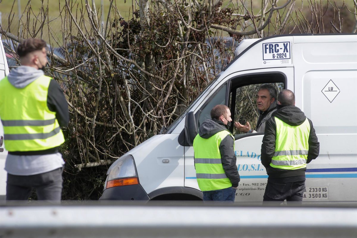 Un transportista charla con un piquete del transporte - Carlos Castro - Europa Press