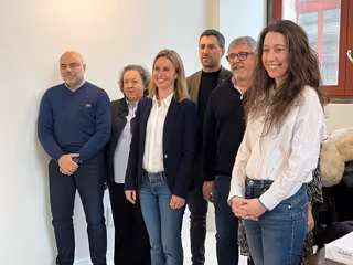 La candidata a rectora de la USC Maite Flores y su equipo en su local electoral, a 25 de febrero de 2026. - EUROPA PRESS