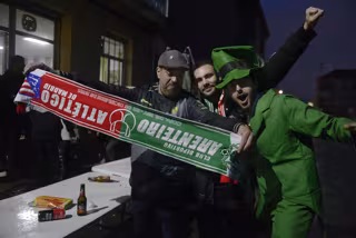 En el propio campo, gorros de Papá Noel teñidos de verde y bufandas. Todo en un estadio que tuvo que ampliar aforo para albergar a la multitud de aficionados. Dos gradas supletorias fue lo máximo permitido por motivos de seguridad.