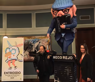 Tras el desfile del 'Meco' desde la plaza de Cervantes hasta la de O Toural, acompañado por la comparsas Os Conformistas de Conxo y A Ruliña de Laraño, Jabois pronunciará el pregón desde el balcón de Bendaña a las 20,30 horas. Posteriormente, habrá un espectáculo de patinaje sobre zancos a cargo del grupo colombiano Tchyminigagua por las calles del casco histórico.