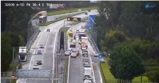 Afectación al tráfico en la A-55, entre Tui y Portugal, por pérdida de carga de un camión y presencia de piezas metalicas en la calzada, que causaron daños a decenas de vehículos. - DGT