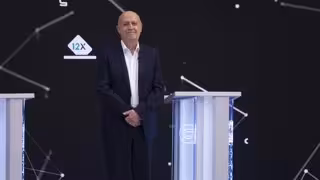 El candidato a la Presidencia de la Xunta de Marea Galeguista, Pancho Casal, en el debate televisivo a siete organizado por la radiotelevisión gallega (CRTVG), el único debate electoral programado en la campaña - CRTV