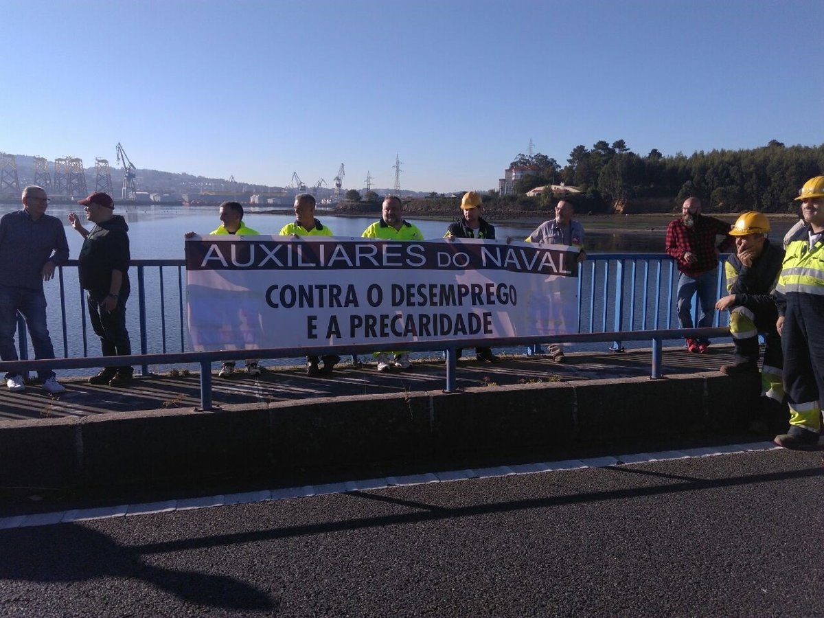 Los operarios del astillero de Ferrol han discurrido en manifestación desde las 10,15 horas, igual que los que desarrollan su labor en la antigua Astano. Todos ellos se han reunido sobre el puente de As Pías, donde han permanecido concentrados durante varios minutos, cortando los carriles en ambos sentidos, para realizar una asamblea.