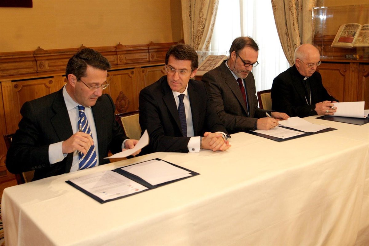 Durante su intervención en el acto, el presidente de la Xunta, Alberto Núñez Feijóo, ha asegurado que la Catedral es un monumento "a la fe, al a galleguidad y a la cooperación", tres vectores que, ha asegurado, están presentes en este acuerdo.