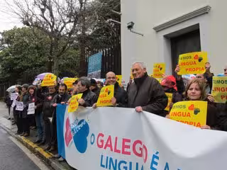 Un centenar de personas se han concentrado este jueves ante la sede del Valedor do Pobo para pedir la dimisión de Benigno López y denunciar que desde su llegada al alto comisionado se ha perpetrado una "auténtica caza de brujas" contra el idioma gallego, poniendo como último ejemplo de ello el escrito remitido a la Consellería de Educación en el que ha dictado una recomendación contraria al uso de un libro de texto en el que únicamente se recogía el punto uno del artículo cinco del Estatuto de Autonomía, en tanto en cuanto su contenido "no fuese corregido".