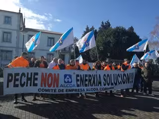 En la concentración, que comenzó a las 10,30 horas en el Puerto de Vigo, los empleados de la multinacional del aluminio portaban una pancarta que rezaba 'Peche non, enerxía solución' --'Cierre no, energía solución--. Allí, los trabajadores de Alcoa se han reunido con el presidente de la Autoridad Portuaria, Enrique César López Veiga, quien les ha explicado que la procedencia del aluminio que entra por el puerto es principalmente de países como Arabia Saudí o Mozambique.