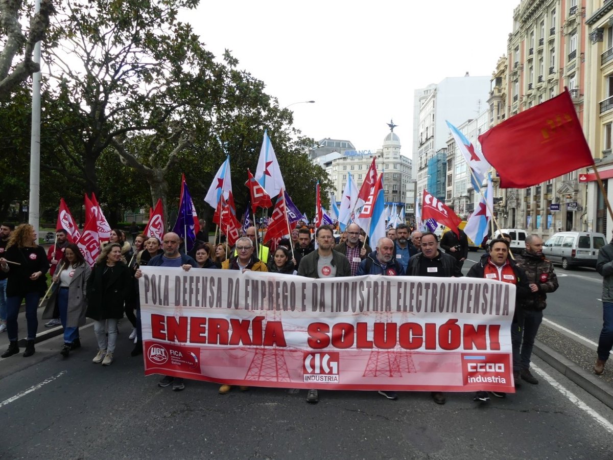 Unas mil personas, según los convocantes, y 500, según la Policía Local, se han manifestado en A Coruña para reclamar al Gobierno la aprobación por la vía de urgencia de un estatuto electrointensivo que garantice una regulación energética "adecuada" para esta industria y la continuidad de los puestos de trabajo.