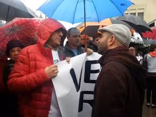 Bajo el lema 'Nuestras centrales no se venden', los asistentes, entre los que se encontraban numerosos trabajadores y vecinos, han pedido que Villar Mir no proceda a la venta segregada de las instalaciones de Ferroatlántica.