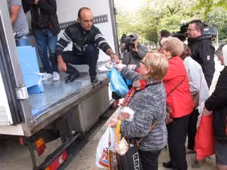 A las 11,45 ha llegado a la Alameda un camión proveniente de A Coruña para repartir los últimos jureles pescados por el cerco gallego este año. Desde ese momento se han formado largas colas con decenas de vecinos y curiosos que se han acercado con bolsas de plásticos y carros de la compra.