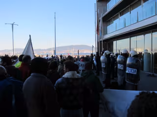 Aunque algunos de los participantes en la protesta ya se habían ido en autobuses (que se dirigieron a la autopista escoltados por la Policía), varias decenas se quedaron en el puerto pesquero, bajo la vigilancia de un fuerte dispositivo policial. La tensión se elevó cuando los marineros trataron de marcharse y, según su versión, la Policía les impidió irse para evitar que volvieran a cortar el tráfico.