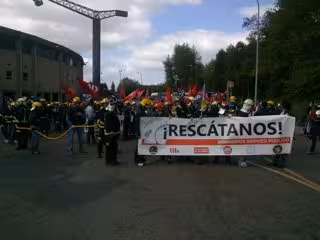 Por ello, tanto bomberos gallegos como de otras comunidades españolas --Castilla y León, Andalucía o Murcía-- han partido del estadio de San Lázaro, pasadas las 11,00 horas, bajo el lema 'Rescátanos'.