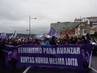En concreto, esta marcha por el Día de la mujer recorre las calles desde la estación de tren hasta la Praza da Quintana bajo el lema "feministas para avanzar xuntas nunha mesma loita".