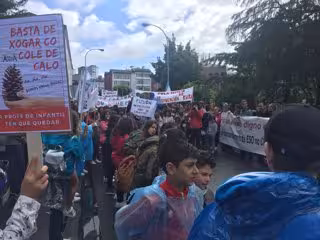 Cientos de padres, alumnos y vecinos de las localidades de As Pontes, Outes, Ribadavia y O Porriño, entre otras, se han manifestado en Santiago de Compostela rodeando las instalaciones de la Xunta de Galicia en rechazo a la reordenación del mapa de centros planteada por el departamento de Román Rodríguez en la jornadas previas al final del curso académico.