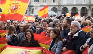 La concentración, convocada por el PP provincial de A Coruña, ha comenzado a las 12,00 horas en la plaza del Ayuntamiento, donde, al ritmo de 'Que viva España' de Manolo Escobar y portando banderas españolas, centenares de personas han protestado al presidente del Gobierno, Pedro Sánchez, "por un país unido".