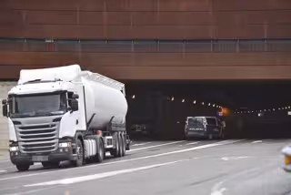 Un camión pasa el puesto fronterizo de Somport (Huesca) entre España y Francia tras el cierre de fronteras acordado por el Gobierno, en Huesca / Aragón (España), a 17 de marzo de 2020. - Verónica Lacasa - Europa Press