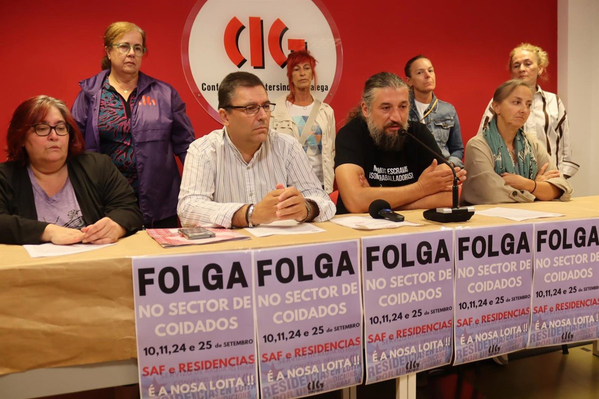 Rueda de prensa de la CIG para convocar paros y movilizaciones en residencias de mayores y privadas y SAF, en Santiago de Compostela - CIG