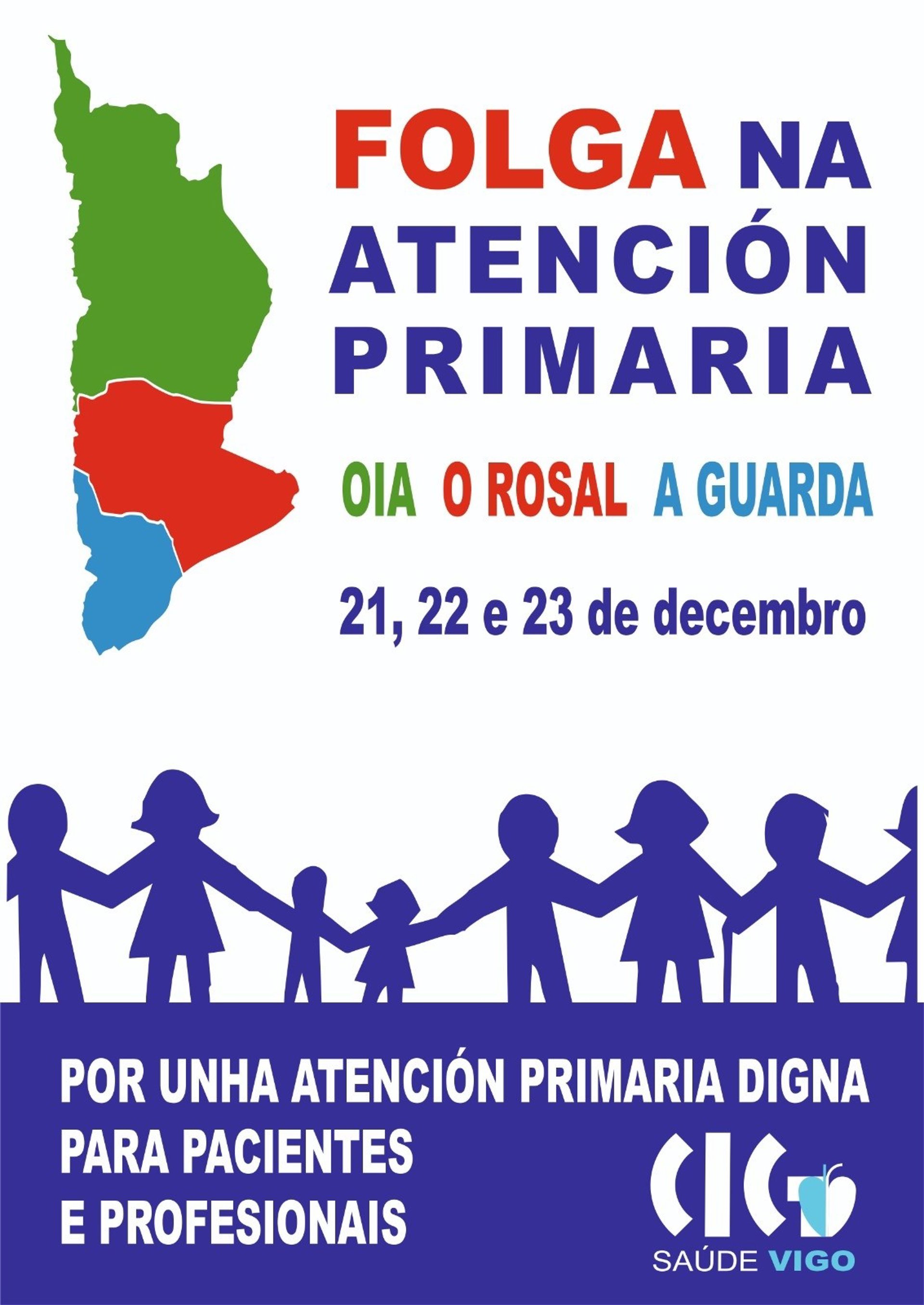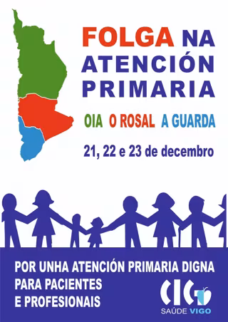 CIG ha convocado una huelga para los días 21, 22 y 23 de diciembre, martes, miércoles y jueves, en los centros de salud de O Rosal, A Guarda y Oia (Pontevedra) en defensa de "una asistencia sanitaria digna". Además, el martes una manifestación arrancará a las 19,30 horas de la Alameda de O Rosal.