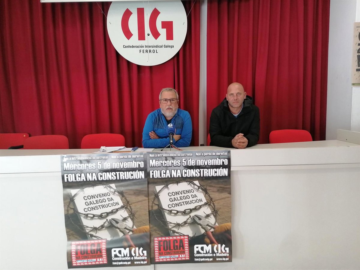 La Federación de Construcción e Madeira de CIG-Ferrol ha anunciado este lunes la convocatoria de huelga general en el sector de la construcción en Galicia para el próximo 5 de noviembre. La movilización afectará a los convenios de construcción, pintura y derivados del cemento.
