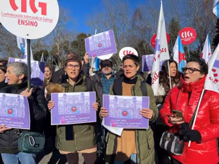 CIG-Ensino se ha concentrado este miércoles delante de la Consellería de Educación, en Santiago, para exigir que "deje de incumplir sus obligaciones" e "inicie los trámites de constitución de la Comisión de Negociación del Plan de Igualdade del personal docente".