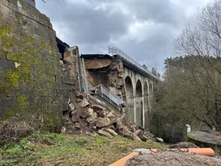 Según ha informado la Guardia Civil de Ourense, el incidente se ha producido a las 09,00 horas al colapsar parte de la sillería del muro derecho del puente, de titularidad autonómica y que estaba siendo sometido a obras de reparación.