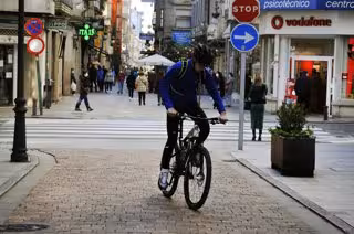 Una persona circula en bicicleta por una vía del centro el mismo día en que se levanta el cierre perimetral del municipio y se reabre la hostelería, en O Carballiño, Ourense, Galicia, (España), a 21 de noviembre de 2020. Esta nueva fase de desescalada s - Rosa Veiga - Europa Press - Archivo