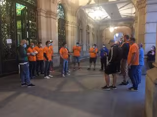 Trabajadores de Alu Ibérica al término de su encierro en el Ayuntamiento de A Coruña - AYUNTAMIENTO DE A CORUÑA