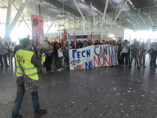 Tras las primeras horas de paro y después de celebrar una concentración en la terminal, el comité de huelga ha asegurado que el seguimiento ha sido "total" y ha provocado "el cierre de las cafeterías, de las ventanillas de atención a los pasajeros de las líneas aéreas, de los puntos de información y de la oficina de Correos".