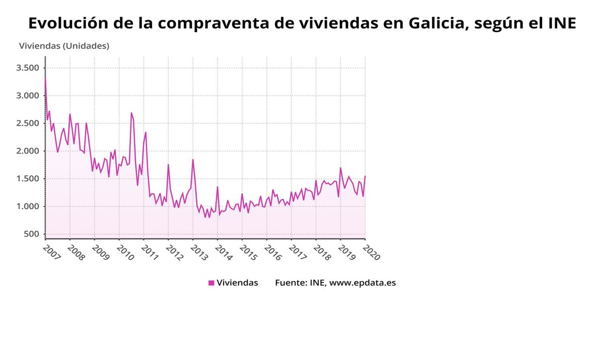 Evolución de la compraventa de viviendas en Galicia - INE-EPDATA