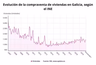 Galicia registró un total de 1.418 compraventas de viviendas en noviembre de 2019, lo que supone una caída del 2% respecto al mismo mes del año anterior, según los datos que publica este lunes el Instituto Nacional de Estadística (INE).