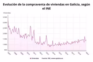 De este modo, las compraventas siguieron en la comunidad gallega una evolución contraria a la del conjunto estatal, donde descendieron un 3,1%. Las 1.433 operaciones suponen una ratio de 65 por cada 100.000 habitantes.