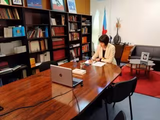 Ana Pontón, portavoz nacional del BNG, en la sede, en la videoconferencia con el resto de líderes políticos y Feijóo ante la crisis del coronavirus - BNG
