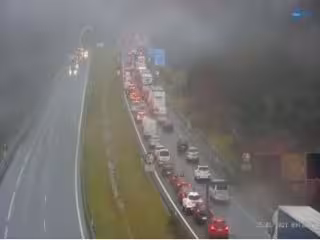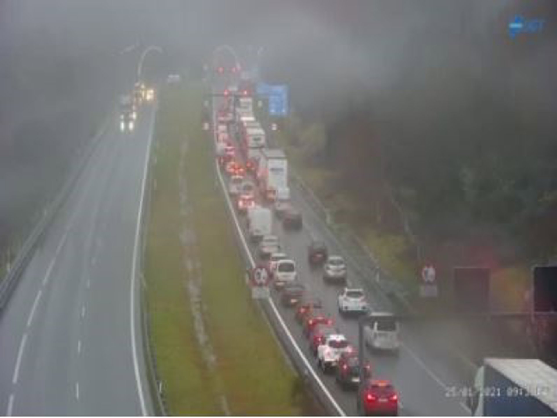Retención de vehículos en la autovía A-52, a la entrada del túnel de A Cañiza (Pontevedra), en dirección Ourense, por el incendio de un camión. - DGT