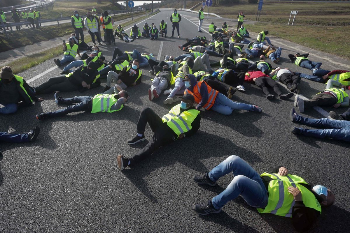 Los piquetes, con todo, lograron su objetivo en el que supone el quinto día de paro del transporte y se tiraron al suelo para simbolizar el corte de la carretera en uno de los sentidos de la vía, con gritos de "¡Ministra, dimisión!", en referencia a la de Transportes, Raquel Sánchez.