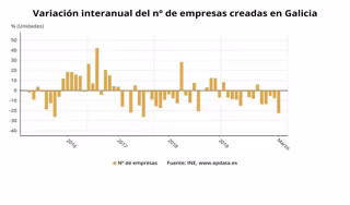 Galicia registró la constitución de 296 empresas en marzo, lo que supone un descenso del 22,3% en comparación con el mismo mes de 2019, según los datos que publica este jueves el Instituto Nacional de Estadística.
