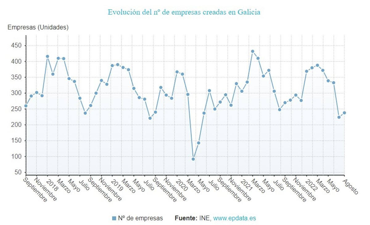 El número de nuevas sociedades mercantiles disminuyó un 4% en agosto en Galicia en relación al mismo mes de 2021, hasta sumar un total de 238 empresas, mientras las disoluciones subieron un 3,8%, hasta 81, según los datos que publica este martes el Instituto Nacional de Estadística (INE).