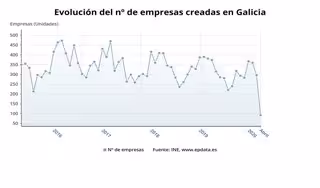Evolución del número de empresas creadas en Galicia, hasta abril de 2020, según los datos publicados por el Instituto Nacional de Estadística (INE). - EP DATA