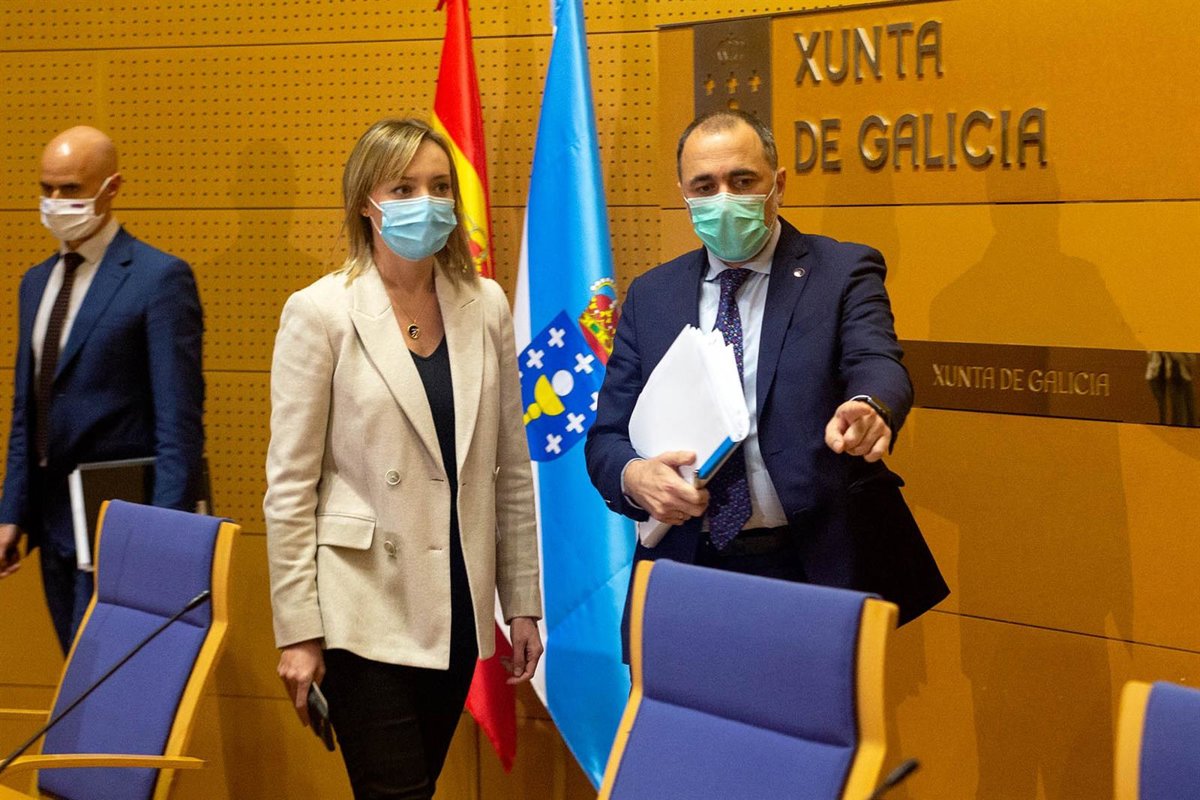 Los conselleiros de Política Social, Fabiola García, y de Sanidade, Julio García Comesaña, presentan en rueda de prensa el cribado de residencias semanal - XUNTA/XOÁN CRESPO