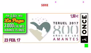 El cupón diario de la ONCE del 23 de febrero, dedicado al 800 Aniversario de los Amantes de Teruel, también ha dejado premios en localidades de la Comunidad Valencia, agraciada con 350.000 euros; y Cataluña (140.000 euros).