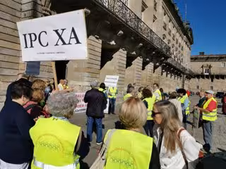 Esta protesta en la capital gallega prosigue con las organizadas por los pensionistas de todo el Estado los lunes de cada mes desde hace casi dos años. Se trata de una lucha por la situación "tan complicada" que atraviesan los mayores, según ha explicado Fraguela, puesto que la pensión media se sitúa "sobre los 900 euros", por lo que urgen una "actualización real" al IPC.