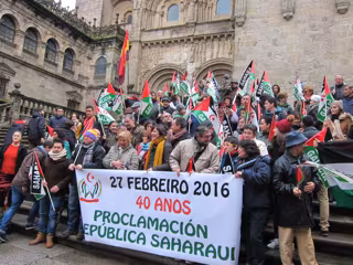 Decenas de personas se han concentrado este sábado en Santiago de Compostela con motivo del 40º aniversario de la proclamación de la República Saharaui y pedir al Estado español que "asuma su responsabilidad" y busque soluciones "justas y duraderas".